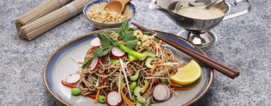 Buckwheat Noodle Salad with Sun-Dried Tomato Pesto Ingredients 6 Brazil nuts 1/4 cup oil-packed sun-dried tomatoes, drained 1/4 cup fresh lemon juice 2 small garlic cloves 1 pinch crushed red pepper 1/2 cup extra-virgin olive oil Kosher salt and black pepper, to taste 12 ounces buckwheat noodles 1/2 pound haricots verts, halved 1 1/2 cups fresh young peas (8 ounces)…